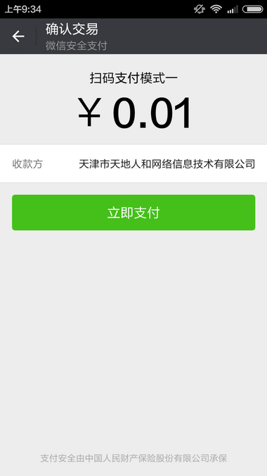案例三:刷卡支付(请打开微信扫一扫功能,扫描以下二维码进行支付测试)